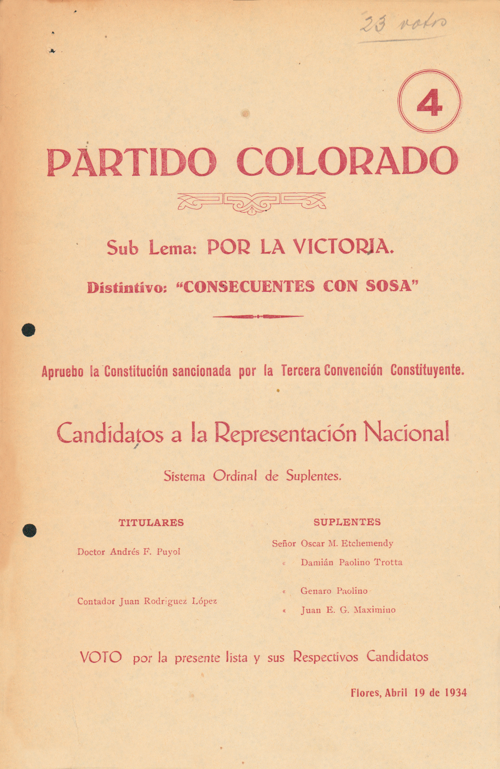 | Título : | Partido Colorado. Lista 4 (Flores) (1934) |